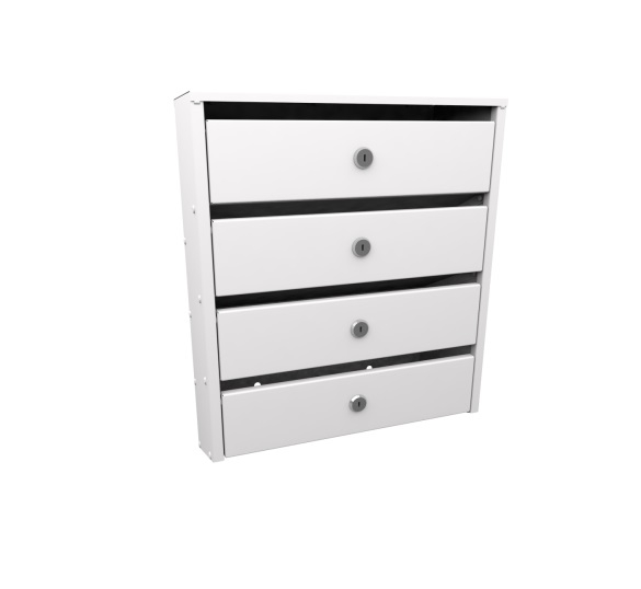 Узкие 4-х секционные почтовые ящики для подъездов многоквартирных домов серии «Сигма» с задней стенкой. Корреспонденция располагается в секции под углом 25 градусов.