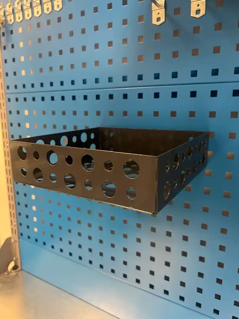 Предназначены для хранения лёгких вещей, устанавливаются на перфорированные профили и панели.