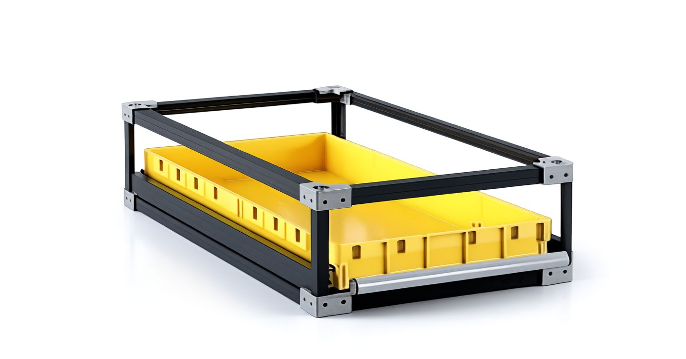 Усиленный модуль имеющий собственный силовой каркас, позволяющий использование как в стандартном стеллаже, так и в качестве самостоятельной (напольной) инсталляции. Распределенная нагрузка до 80 кг. Размещение до 8 наименований товара изолированно друг от друга. Глубина (выдвинутая) - 1900 мм