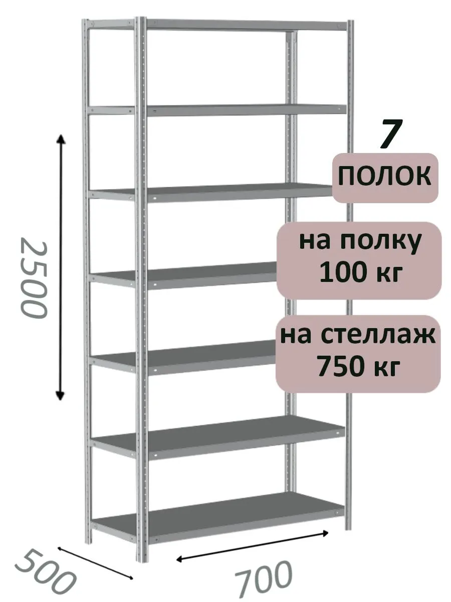 Чтобы уточнить цену и заказать доставку Стеллаж металлический полочный МС 2500х700х500, 7 полок, 100 кг на полку, светло-серый в , звоните по телефону или закажите обратный звонок.
