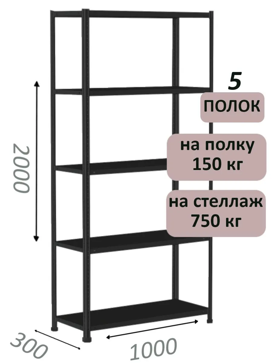 Стеллаж МС 2000х1000х300, 5 полок, чёрный