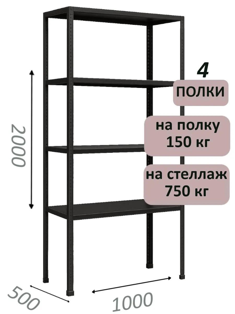 Стеллаж МС 2000х1000х500, 4 полки, чёрный
