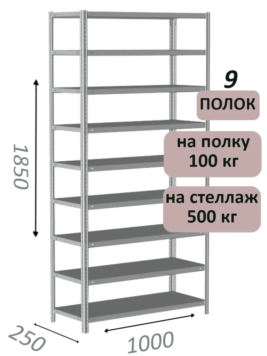 Стеллаж MS Standart 185х100х25, 9 полок, серый