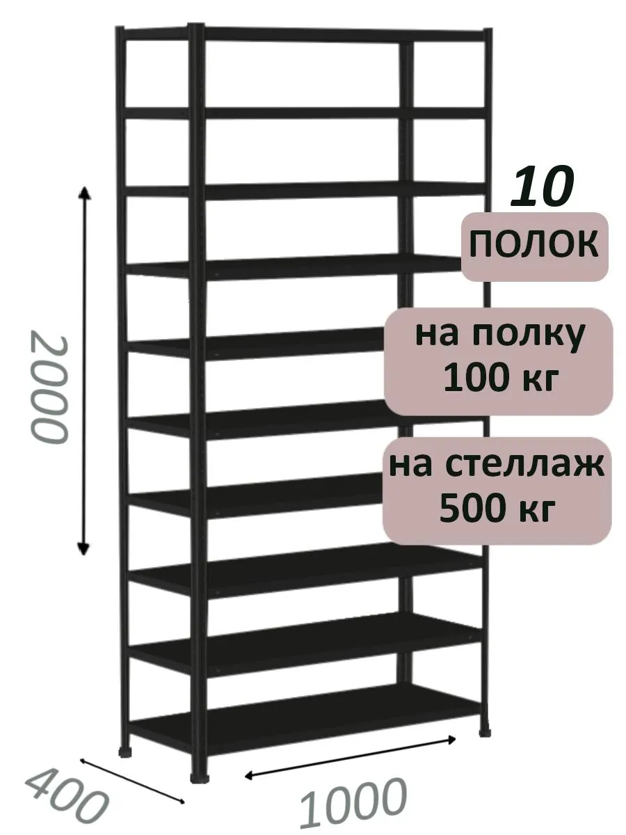 Стеллаж MS Standart 200х100х40, 10 полок, чёрный
