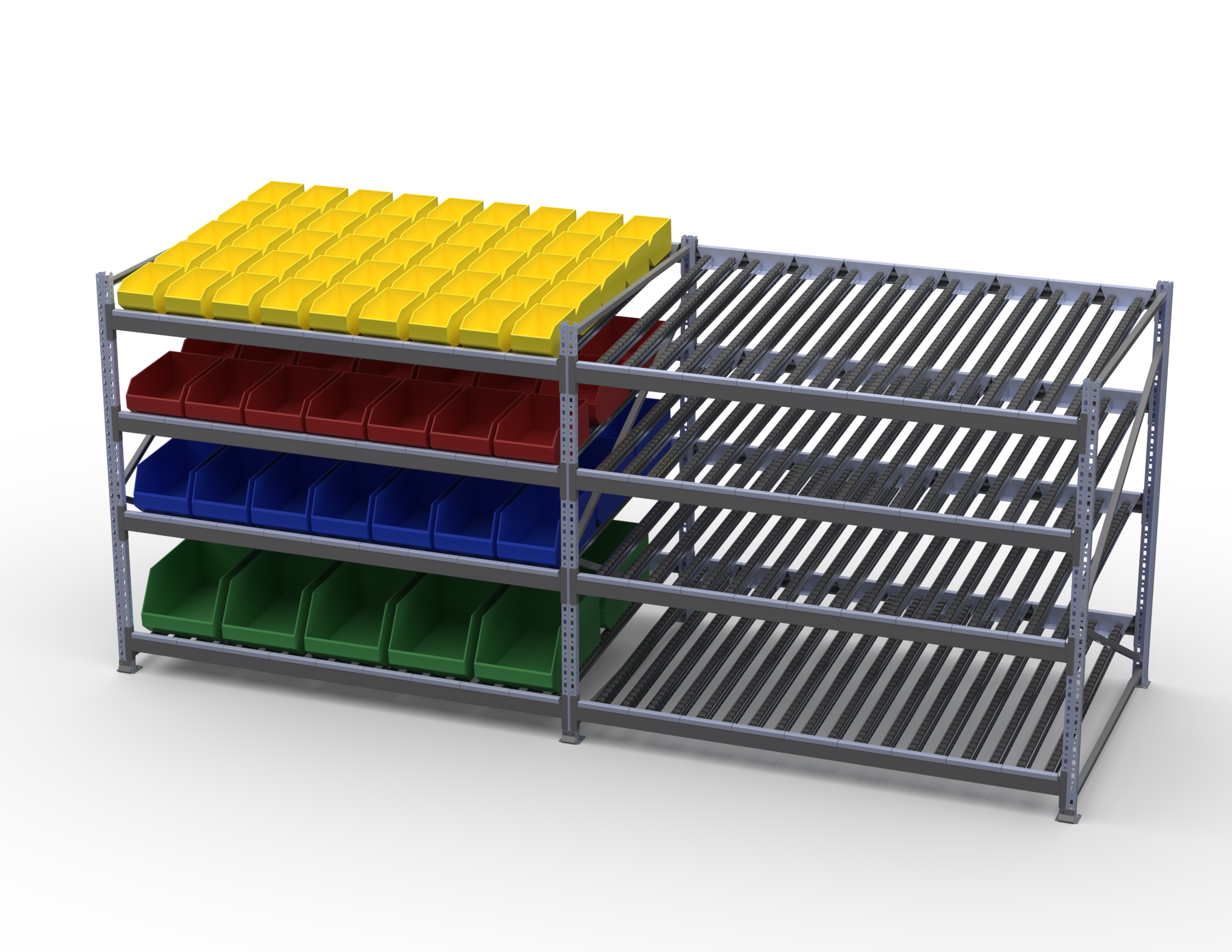 Гравитационные полки на фронтальные стеллажи — ускорение подбора штучных заказов