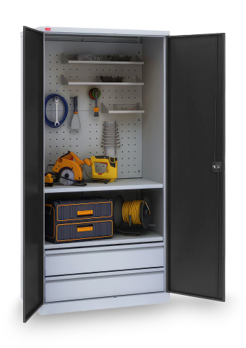 Односекционный инструментальный шкаф. Вариант возможной комплектации (инструменты на фото в комплектацию не входят)